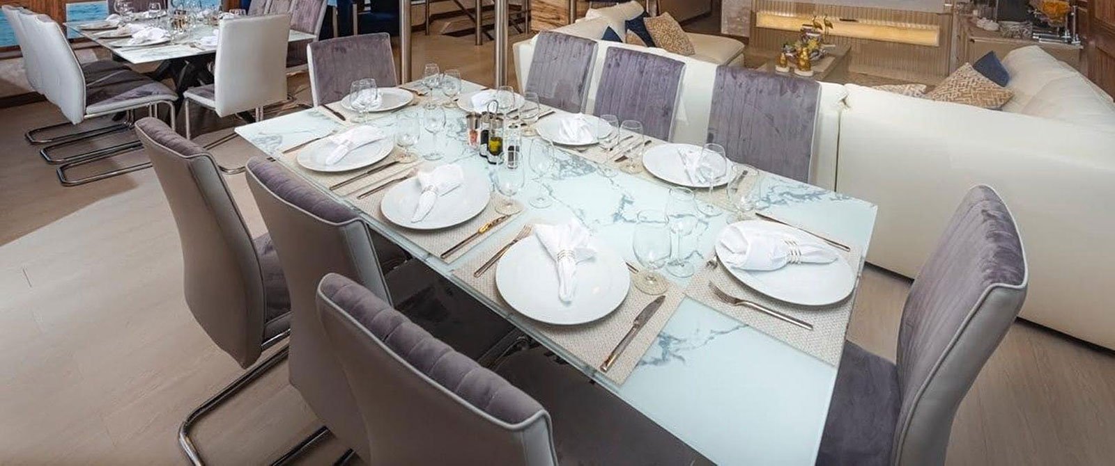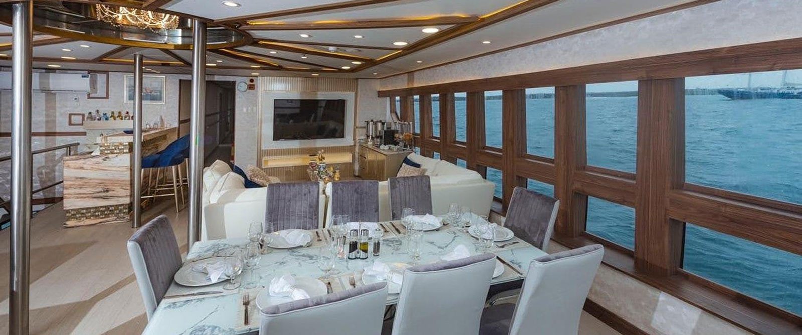 There is a main-deck air-conditioned salon with a TV & lounge area and furnished with dining tables where delicious cuisine is served.