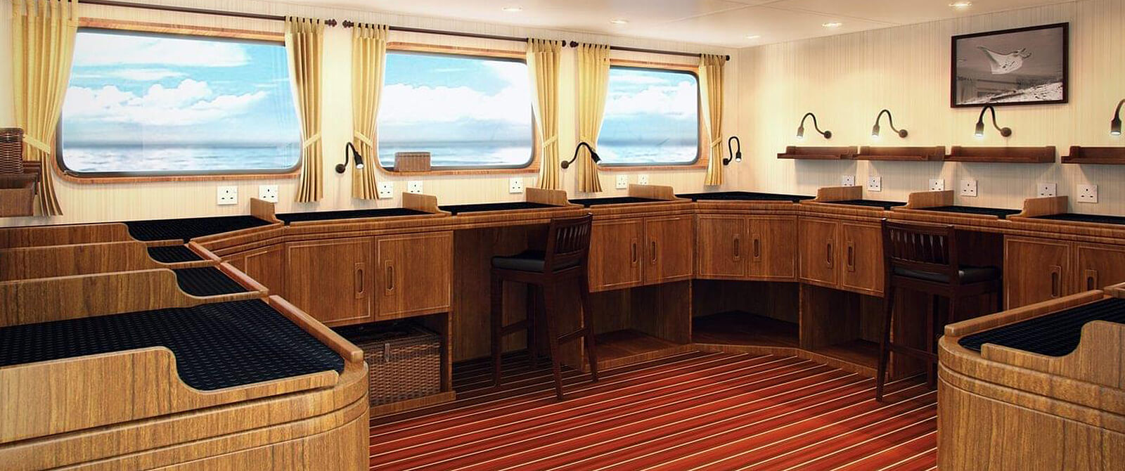 A beautifully furnished en-suite and air-conditioned cabin on the main deck with 1 double and 1 twin bed (price for this cabin is based on 2 people sharing, but a third person can also be added upon request at extra cost). All cabins have a porthole or windows and come with a private bathroom, hot showers, ample storage space for luggage, fresh towels daily, tables and power points with 2 and 3 pin sockets, and individual climate controls.