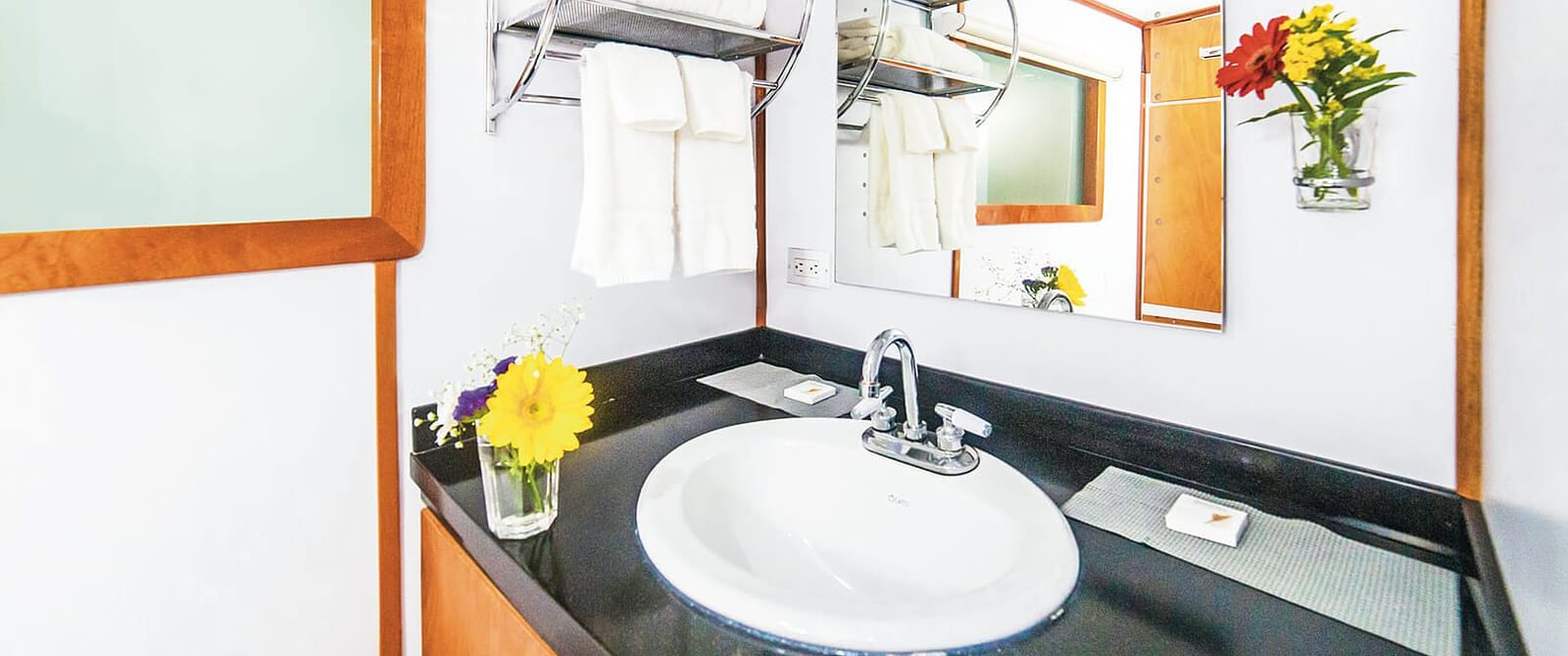 Upper and lower beds en-suites with private showers and individually-controlled air conditioning. Four staterooms are available on the lower deck. Configuration varies between the 4 staterooms.