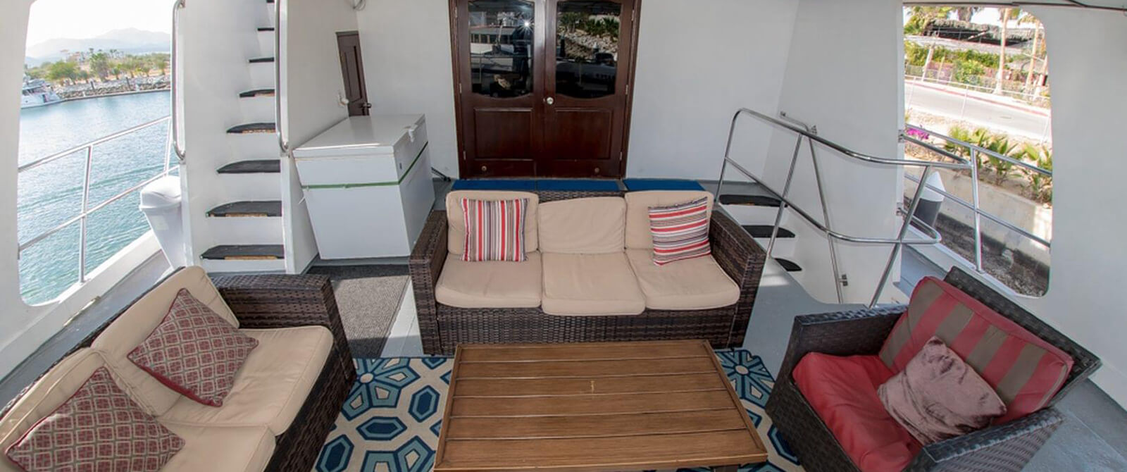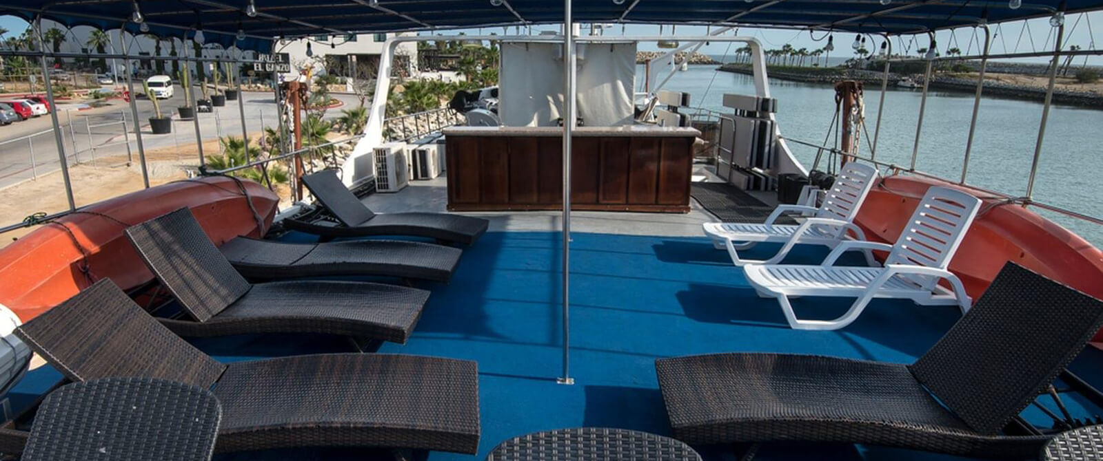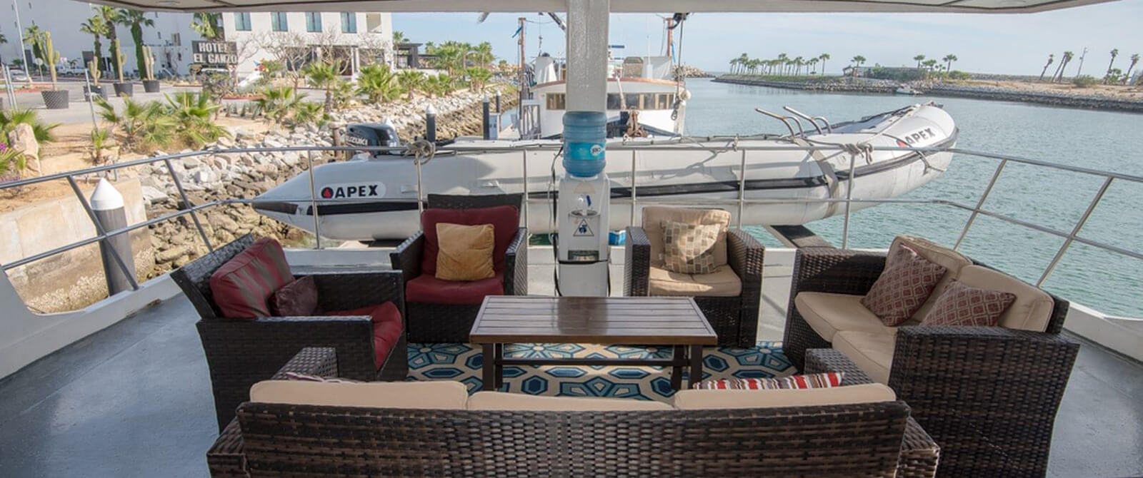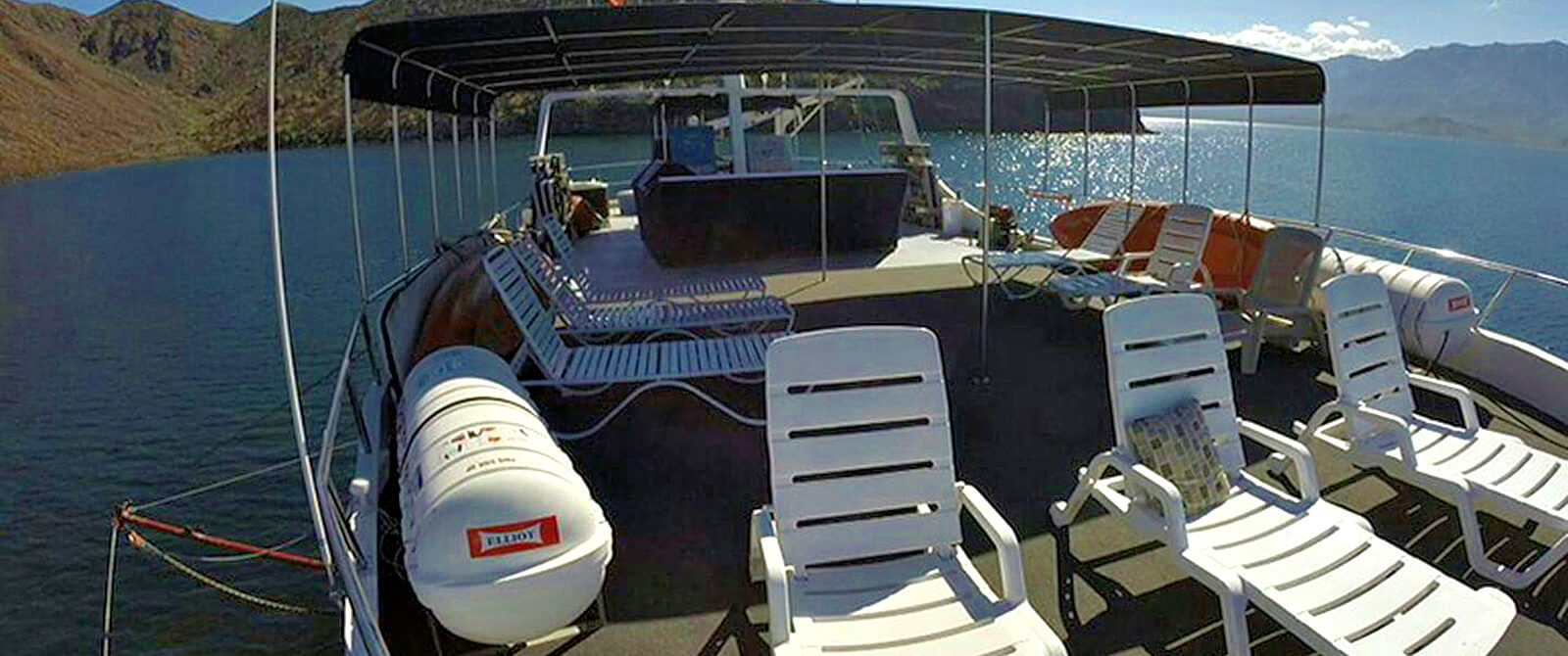 In between dives, guests can relax on the large partially shaded sundeck with lawn chairs.