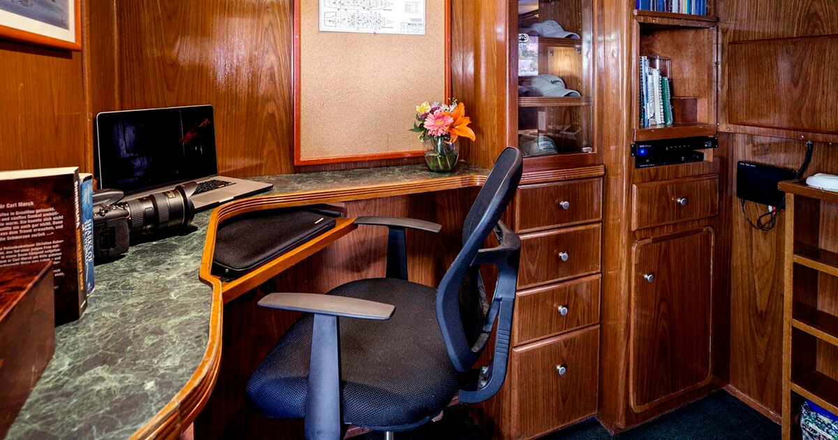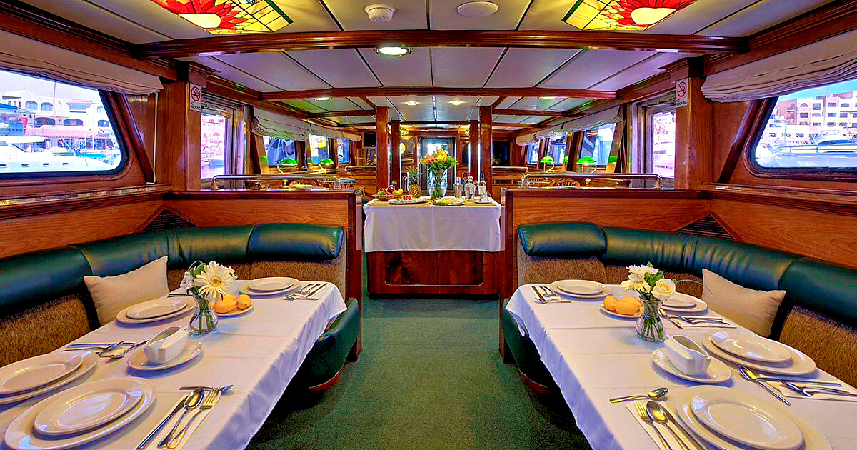 - The largest dive deck and camera table of all boats operating in the area. Gorgeous, rich mahogany and brass interior